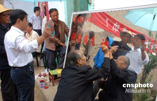 9月25日下午, 在山西運城市鹽湖區(qū)安邑街道辦事處楊家卓村景海鵬的老家,前來到賀喜的親戚朋友和當?shù)卣斫j繹不絕。中新社發(fā) 張雷杰 攝