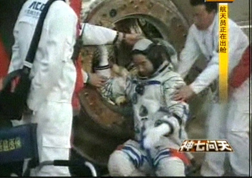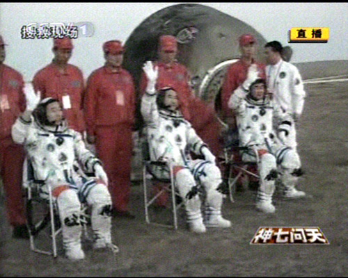 9月28日,神舟七號飛船返回艙順利著落,三名航天員翟志剛、劉伯明、景海鵬在經過15-20分鐘的重力再適應后全部出艙。首先出艙的是翟志剛,第二個出艙的是劉伯明,第三個出艙的是景海鵬。