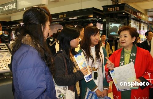 10月31日,日本滋賀縣知事嘉田由紀(jì)子在湖南平和堂商場(chǎng)向消費(fèi)者推介滋賀縣的旅游資源。當(dāng)天,日本滋賀縣在長(zhǎng)沙舉行了旅游推介大會(huì),盛邀洞庭湖的居民到日本游覽琵琶湖。由于該縣一些主要景點(diǎn)都是模仿湖南的“瀟湘八景”而命名,引起了與會(huì)人員的強(qiáng)烈興趣。中新社發(fā) 鄧霞 攝