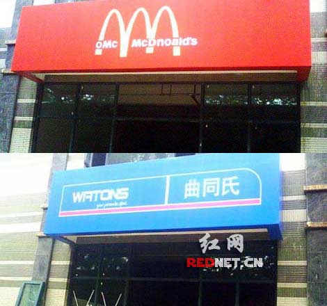 紅網(wǎng)長(zhǎng)沙11月9日訊(記者 耿紅仁)“這擦邊球打得很牛很雷人,真是山寨店鋪大薈萃!”8日晚上,網(wǎng)友“鍋爐工”在紅網(wǎng)論壇發(fā)帖爆料,稱在網(wǎng)上看到一個(gè)題為《對(duì)不起,我真的被雷到了,南京最雷人山寨店群》的圖片帖,圖片顯示在南京文安街上,林立的店鋪清一色是山寨名牌店鋪,其中屈臣氏、必勝客、麥當(dāng)勞、李寧、星巴克、哈根達(dá)斯等分別被克隆成曲同氏、必勝糊、李明、巴克星、哈根波斯等。