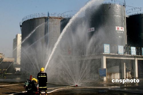 11月11日上午,山東濰坊市區(qū)藍天化工廠液氯罐突然爆炸,氯氣大量泄漏并向四周擴散。濰坊市應急辦迅速啟動《濰坊市危險化學品特大安全事故應急援救預案》實施緊急救援。為貫徹上級關(guān)于大力推進防空防災在一體化建設、促進城市建設與人防建設同步協(xié)調(diào)發(fā)展的指示精神,濰坊市人民政府、濰坊軍分區(qū)決定,結(jié)合當?shù)亍皟煞酪惑w”特點,組織這次演習。中新社發(fā) 王勇 攝