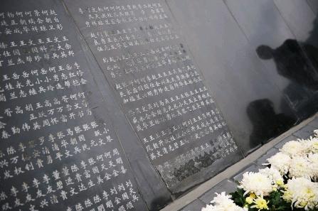 紀(jì)念臺(tái)上,鐫刻著地震中遇難者的名字 攝影 雷宇