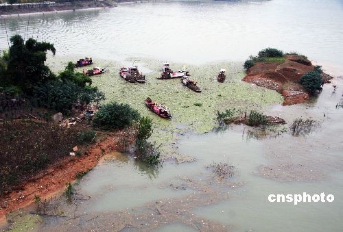 11月18日,重慶市云陽移民新縣城濱江庫岸公園一帶水域,三十多艘打撈船展開協(xié)作會戰(zhàn)大攻勢,準(zhǔn)備“吃掉”最后的集合漂浮垃圾。從三峽庫區(qū)腹心區(qū)縣清漂工作現(xiàn)場獲悉,目前整個三峽蓄水清漂已進(jìn)入“收官”大戰(zhàn),大面積滯留、回旋、淤積漂浮物已從江面清除上岸。中新社發(fā) 饒國君 攝