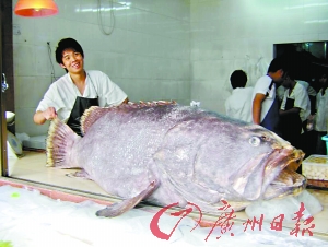 圖:東莞身長(zhǎng)2.12米"石斑魚王"下油鍋