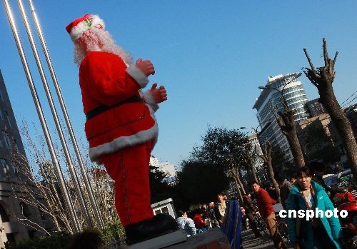 11月20日,可愛的“圣誕老人”北京街頭為來往的路人唱歌跳舞。雖然離圣誕節(jié)還有一個(gè)多月,但是北京的圣誕氣氛漸濃,許多商家開始裝飾門面,迎接“購物季”的到來,一場圣誕商戰(zhàn)正在悄然打響。中新社發(fā) 鄭雄增 攝