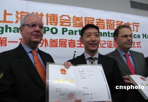 圖:上海世博會首批境外參展者獲頒證照