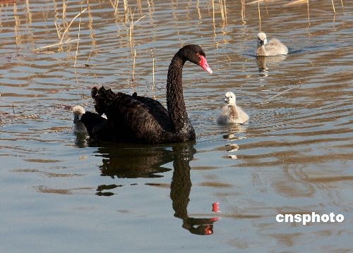 12月14日,北京圓明園,一對黑天鵝夫婦帶著8只未滿月的天鵝寶寶在享受著北京冬日溫暖的陽光。據(jù)介紹,8只小黑天鵝是11月22日出生。中新社發(fā) 鄭雄增 攝