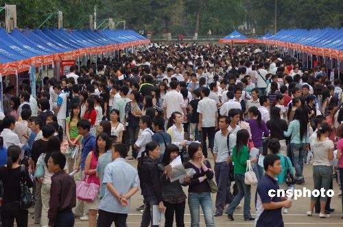 3月24日,廣西舉行促進大學畢業(yè)生就業(yè)公共服務系列活動啟動儀式暨廣西民族大學專場招聘會。中國廣西人才市場將招聘會設在了大學校園,約5000名即將畢業(yè)的大學生參加招聘會。據(jù)悉,2009年在廣西畢業(yè)的大學生預計達13萬人,就業(yè)壓力空前。為此,廣西人事廳將采取多種措施,在廣西各大學進行專場招聘和一系列就業(yè)公共服務活動,零距離為畢業(yè)生提供服務。中新社發(fā) 劉萬強 攝