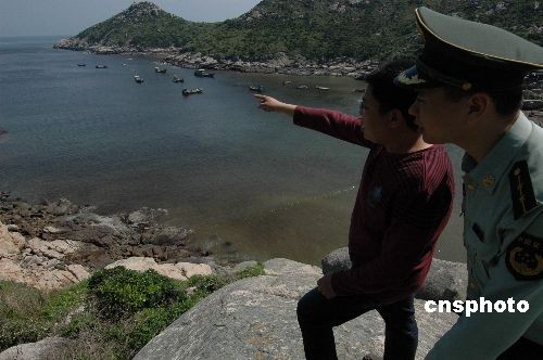 5月6日,南麂邊防派出所官兵在海邊觀察赤潮污染情況。 中國首批五個國家級海洋類型自然保護(hù)區(qū)之一的浙江省平陽縣南麂列島海域從5月2日起發(fā)生赤潮現(xiàn)象,目前開始有所消退。發(fā)現(xiàn)赤潮后,南麂邊防派出所官兵迅速出動,向當(dāng)?shù)貪O民群眾宣傳有關(guān)防范知識,并提醒水產(chǎn)養(yǎng)殖戶做好各項預(yù)防措施。中新社發(fā) 吳水斌 攝