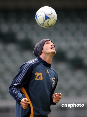 三月八日,英國足球巨星、現(xiàn)效力于美國洛杉磯銀河隊的貝克漢姆在香港大球場與球隊一起訓練,備戰(zhàn)九日將舉行的表演賽。中新社發(fā) 武仲林 攝