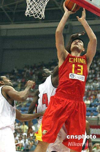 7月19日下午,中國男籃在杭州舉行的2008斯坦科維奇洲際杯籃球賽的比賽中迎戰(zhàn)北京奧運會同組對手安哥拉隊,姚明繼續(xù)替補出場砍下16分,但是中國隊外線啞火失誤過多以71比72負于對手。中新社發(fā) 任晨鳴 攝