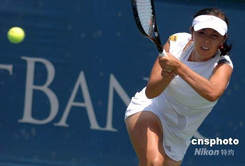 當(dāng)?shù)貢r(shí)間7月22日,華美銀行杯女子網(wǎng)球公開(kāi)賽(WTA巡回賽之一)上,中國(guó)選手彭帥以2比0輕松戰(zhàn)勝美國(guó)選手朱莉·迪蒂晉級(jí)第二輪。第二天,彭帥將迎戰(zhàn)4號(hào)種子、俄羅斯名將薩芬娜(WTA排名第9)。包括揚(yáng)科維奇((WTA排名第2)、小威廉姆斯(WTA排名第5)等世界女網(wǎng)名將參加了本次女子網(wǎng)球公開(kāi)賽,其中有近30名選手將參加北京奧運(yùn)會(huì)比賽。中新社發(fā) 張煒 攝