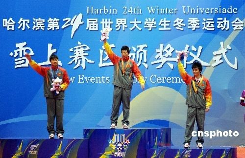 2月23日上午,第24屆大冬會第六天,在亞布力滑雪場中國男子運動員包攬了空中技巧個人滑雪的前三名。中新社發(fā) 姚庭山 攝