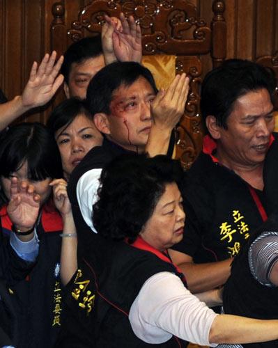 臺灣“立法院”昨天爆發(fā)肢體沖突,藍(lán)綠各有一名“立委”掛彩送醫(yī)。吳育升右臉遭計時器砸傷、縫八針,民進(jìn)黨“立委”郭玟成被人推落主席臺,兩人都送往臺大醫(yī)院治療;臺“行政院長”吳敦義、“立法院長”王金平分別前往探視。