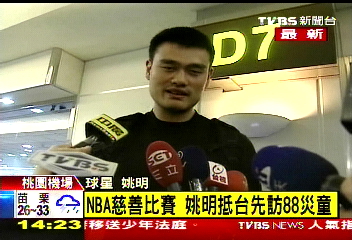 姚明這次來(lái)臺(tái)是參加“2010姚基金慈善之旅”的活動(dòng),不過(guò)一抵達(dá)臺(tái)灣,他將立刻搭乘高鐵,前往高雄和八八風(fēng)災(zāi)的受災(zāi)戶學(xué)童見(jiàn)面。