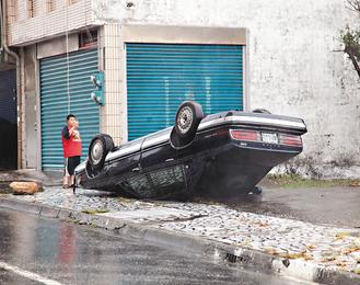 中新網(wǎng)9月20日電 據(jù)臺灣《聯(lián)合報》報道,臺風“凡那比”(大陸稱“凡亞比”)強勁,花蓮刮起17級強風,一整排十多輛轎車車窗被吹裂“開花”,轎車四腳朝天,摩托車騎士閃躲滿天飛舞的招牌鐵片,有民眾以“血滴子”來形容它的恐怖。