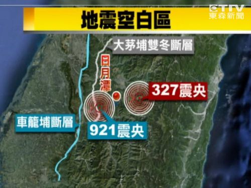 327地震、602地震兩次地震震中都位于921地震車(chē)籠埔斷層?xùn)|邊,這塊區(qū)域過(guò)去很少有地震紀(jì)錄,被稱(chēng)為“日月潭地震空白區(qū)”,從過(guò)去的地震分布圖分析,日月潭東邊這區(qū)塊是幾乎是空白一片。臺(tái)灣“中央大學(xué)”地球科學(xué)院長(zhǎng)王干盈在327地震后曾表示,“中央山脈很硬,卡住,所以921地震,你可以看到這個(gè)地方卡住,所以它才沖到這邊來(lái)。”