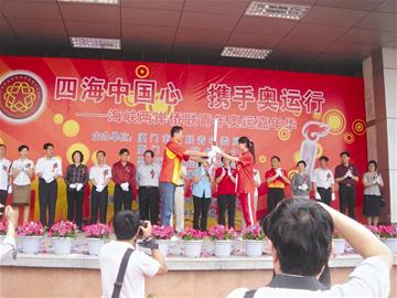 在火炬接力活動(dòng)結(jié)束之后,在場(chǎng)的臺(tái)灣學(xué)生、廈門僑界青年以及廈門各街道僑聯(lián)代表隊(duì)組成的18支隊(duì)伍,還興致勃勃地參與了主題為 “四海中國心·攜手奧運(yùn)行”的趣味運(yùn)動(dòng)會(huì)、奧運(yùn)謎語競猜等嘉年華系列活動(dòng)。