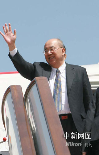 中新網(wǎng)北京5月29日電 中國國民黨主席吳伯雄及其率領的大陸訪問團全體成員,今天上午乘包機離開北京飛赴上海。中共中央臺辦主任陳云林前往機場送行。