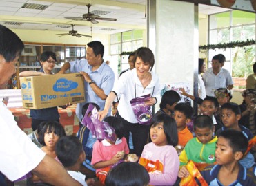 “這是給你的,要好好珍惜喲!”泰武小學(xué)學(xué)生從周美青手中,接獲她贈(zèng)送每人一個(gè)絨毛小熊及餅干時(shí),個(gè)個(gè)笑得合不攏嘴。