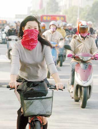 沙塵暴三日侵襲臺(tái)灣,各地懸浮微粒濃度明顯增加,北部地區(qū)空氣質(zhì)量達(dá)到不良情形,懸浮微粒濃度以嘉義樸子和臺(tái)南安南飆高超過每立方米三百五十微克為最高。為“抵抗”沙塵暴,外出上班的民眾用頭巾包住口、鼻。臺(tái)灣《中國時(shí)報(bào)》圖 劉宗龍 攝
