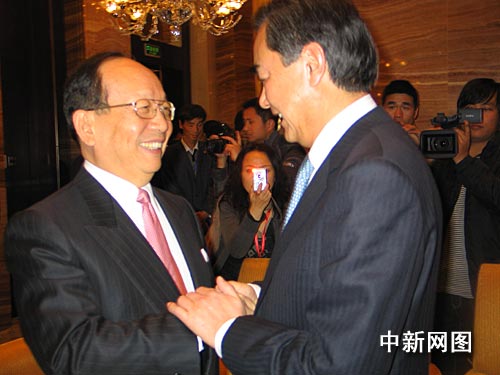 中新社西安十一月十八日電 (記者 冽瑋)十八日晚間,中國(guó)國(guó)務(wù)院臺(tái)辦主任王毅在西安出席即將召開的海峽兩岸(陜西)經(jīng)貿(mào)科技合作大會(huì),會(huì)見了到會(huì)的中國(guó)國(guó)民黨副主席蔣孝嚴(yán);中國(guó)國(guó)民黨中央評(píng)議委員會(huì)主席團(tuán)主席、永豐銀行董事長(zhǎng)邱正雄等二十余位臺(tái)灣工商界人士。