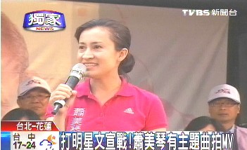 中新網(wǎng)2月12日電 據(jù)臺灣TVBS報道,民進黨花蓮“立委”補選候選人蕭美琴趁農(nóng)歷年前返鄉(xiāng)潮,打出花蓮人交通票價減半政見,現(xiàn)在又在文宣戰(zhàn)下功夫。蕭美琴不但有專屬主題曲,還拍攝一支MV,從裝扮到廣告牌、海報,整體被包裝成當(dāng)紅女明星。
