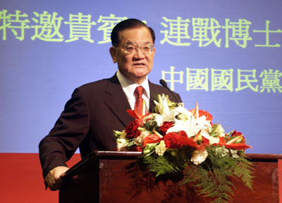 連戰(zhàn)希望兩岸結(jié)束敵對狀態(tài),降低相互之間緊張的關(guān)系,共同邁向和平的未來。