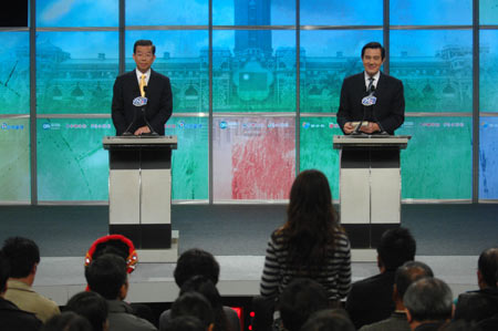 中新網(wǎng)2月28日電 馬英九與謝長廷首次在電視辯論會上交鋒后,引發(fā)一個有趣話題:明明比馬英九矮十幾厘米的謝長廷,為什么畫面上會比馬英九高?