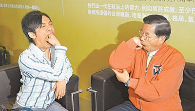 藝人教謝長廷“吞拳頭”拉票 謝自爆常舌吻(圖)