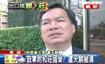 中新網(wǎng)3月17日電 據(jù)臺(tái)灣TVBS報(bào)道,臺(tái)當(dāng)局“教育部”前主秘莊國榮,失言批評(píng)馬英九的父親馬鶴凌,當(dāng)時(shí)和他一起站在臺(tái)上的,還有另一個(gè)官員,就是臺(tái)當(dāng)局“勞委會(huì)”主委盧天麟;盧天麟在過程中,拍手鼓掌,歡呼叫好,針對這動(dòng)作,盧天麟今天出面說明,他說他不是附和莊國榮,因?yàn)樗韭牪磺宄f國榮說了些什么。