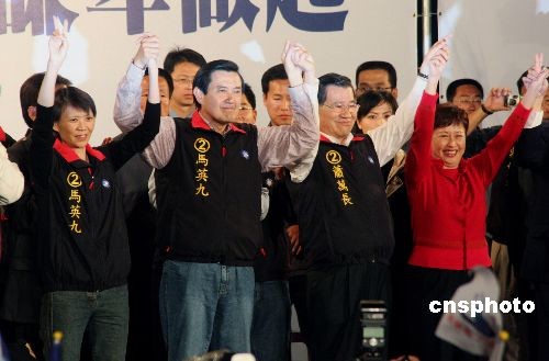 中新社臺(tái)北三月二十二日電 (記者 黃少華 曾嘉)第十二任臺(tái)灣地區(qū)領(lǐng)導(dǎo)人選舉今天舉行。投票結(jié)果:中國(guó)國(guó)民黨候選人馬英九、蕭萬(wàn)長(zhǎng)獲得七百六十五萬(wàn)八千七百二十四票,得票率百分之五十八點(diǎn)四五;民進(jìn)黨的謝長(zhǎng)廷、蘇貞昌得到五百四十四萬(wàn)五千二百三十九票。