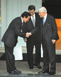 中新網(wǎng)3月28日電 暌違八年李登輝與馬英九再次相會(huì),馬英九、蕭萬長27日展開請益之旅,首站拜會(huì)李登輝,雙方會(huì)談1小時(shí)40分鐘。馬英九會(huì)后表示,李登輝再三提醒未來執(zhí)政要做到清廉,期許他和蕭萬長全心全力為臺(tái)灣打拼。