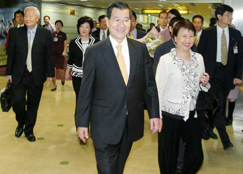 蕭萬長率領(lǐng)“兩岸共同市場基金會”代表團(tuán)一行是在十一日上午搭機(jī)經(jīng)由香港前往海南,同行的有淡江大學(xué)教授蘇起、臺積電董事長張忠謀夫婦、華新麗華董事長焦佑倫和臺灣水泥董事長辜成允等人。