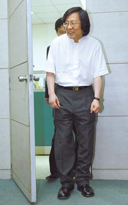 雖然面對(duì)如此嚴(yán)重弊案,但邱義仁走進(jìn)記者會(huì)前仍一副無(wú)辜狀,進(jìn)了會(huì)場(chǎng)也一派輕松。(圖:臺(tái)灣《中國(guó)時(shí)報(bào)》)