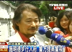 中新網(wǎng)9月9日電 前民進(jìn)黨主席施明德9日計劃與馬英九會面談反貪腐議題,在未獲回應(yīng)后,與倒扁總部骨干范可欽等人步行前往并進(jìn)入了馬英九辦公室;馬英九辦公室由秘書長詹春柏出面接待。
