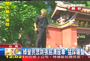 環(huán)球時報駐臺北特約撰稿人周先報道:據(jù)臺灣中天電視臺21日報道,抵臺進行學(xué)術(shù)交流的大陸海協(xié)會副會長張銘清21日上午在臺南市安平古堡參觀時,被綠營支持者推倒在地,當張銘清準備乘車離開時,有“臺獨”分子甚至跳上張的座車車頂狂踩,試圖阻止張銘清離開。另據(jù)臺灣TVBS電視臺消息,張銘清后腦勺被打,連眼鏡都被推飛了出去。