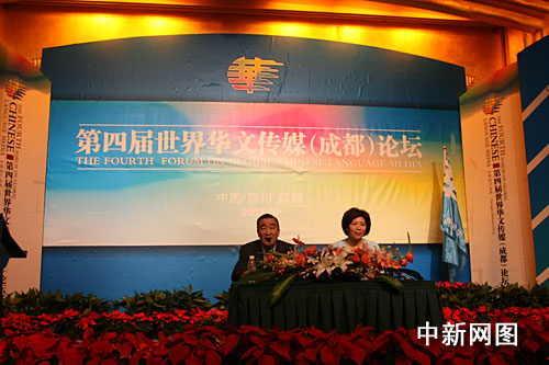 9月4日上午8時30分,第四屆世界華文傳媒論壇大會舉行“部長論壇”。中國奧委會主席、北京奧組委主席助理屠銘德先生;北京市新聞辦主任、北京市奧組委新聞宣傳部常務(wù)副部長王惠女士正在為大家講述奧運(yùn)。中新社 郭晉嘉 攝。