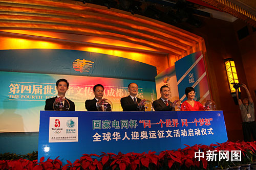 北京2008年奧運會離我們越來越近了。為了表達全球華人對北京2008年奧運會的期盼和祝福,聚僑心、傳華聲,國家電網(wǎng)公司和中國新聞社將共同主辦國家電網(wǎng)杯"同一個世界同一個夢想"全球華人迎奧運征文活動。借此機會,我們舉行征文活動啟動儀式。