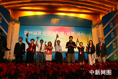 [主持人]: 獲得傳媒機構(gòu)優(yōu)秀獎的有:關(guān)西華文時報(日本)、美中晚報(美國)、亞省時報(美國)