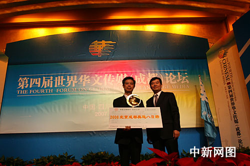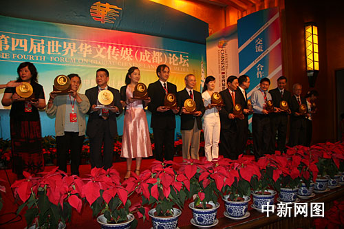 [主持人]: 獲得傳媒機構(gòu)貢獻獎的有:美國僑報、新加坡聯(lián)合早報、香港鳳凰衛(wèi)視