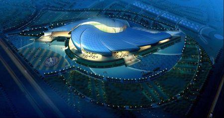 南沙體育館是亞運(yùn)會(huì)武術(shù)比賽場(chǎng)館,因此在設(shè)計(jì)上場(chǎng)館也體現(xiàn)了中國(guó)武術(shù)的意境。南沙體育館的外殼分九個(gè)曲面單元,單元間片片層疊,并分為南北兩組以比賽大廳圓心為中心呈螺旋放射狀展開。這種富有動(dòng)感的設(shè)計(jì)隱喻了中國(guó)武術(shù)的最高境界——“陰陽(yáng)俱合,天人合一”。同時(shí)結(jié)合廣東海洋文化的特征,借鑒了富有肌理變化的“海螺”外殼作為造型設(shè)計(jì)的意向。南沙體育館主體鋼結(jié)構(gòu)部分采用了雙層環(huán)形張弦穹頂結(jié)構(gòu),主跨度達(dá)到了98米。
