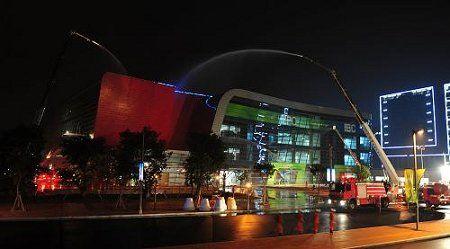 新華網(wǎng)10月11日?qǐng)?bào)道(攝影記者 張曉豐)為做好亞運(yùn)安保滅火救援準(zhǔn)備工作,10月9日晚,廣東省公安消防總隊(duì)在廣州亞運(yùn)城主媒體中心舉行跨區(qū)域滅火救援演練。