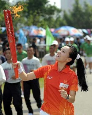 譚晶在亞運火炬?zhèn)鬟f深圳站中(資料圖)