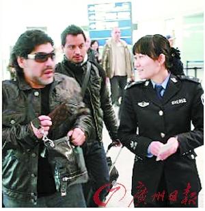 昨天上午9時,馬拉多納乘坐的德國漢莎航空公司航班抵達首都國際機場3號航站樓,約一個小時后,馬拉多納出現(xiàn)在眾人的視線內(nèi)。他一改南非世界杯上西裝革履的打扮,身著黑夾克、戴著墨鏡,顯得精神矍鑠。阿根廷“球王”熱情地和現(xiàn)場的歡迎者打招呼,隨后手捧一束紅玫瑰,登上了機場的擺渡車進入貴賓休息室,并在那里舉行了簡短的新聞發(fā)布會。馬拉多納說:“我剛剛過了50歲生日,我感到非常高興,也非常幸福。我是一個熱愛家庭的人,我會把我的全部都貢獻給我的家庭!瘪R拉多納也對中國足球表示了祝福,他:“在足球領(lǐng)域,中國是沉睡的雄獅,我相信有一天中國足球必然會騰飛!