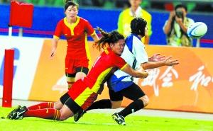 中國(guó)隊(duì)員孫婷婷死死抱住球,敏捷地閃開(kāi)強(qiáng)壯的“追兵”,一路狂奔沖過(guò)底線。只要她將球按在地上,中國(guó)隊(duì)就能在最后時(shí)刻反超對(duì)手,奪得亞運(yùn)會(huì)女子7人制橄欖球的冠軍。就在全場(chǎng)觀眾開(kāi)始振臂歡呼時(shí),孫婷婷手中的球卻掉落在地——根據(jù)規(guī)則,此球不得分。中國(guó)隊(duì)今天最終以14比17不敵哈薩克斯坦隊(duì),獲得亞軍。
