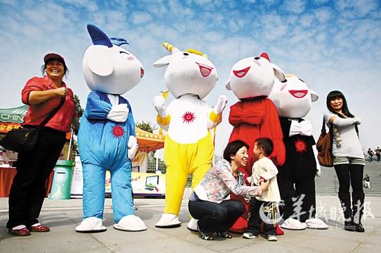 特別值得一提的是,活躍在場館內(nèi)外、街頭巷尾、公交的士上的吉祥物。他們在比賽間隙歡快起舞,與游人親密合影,甚至走進(jìn)首都機(jī)場、上海世博。