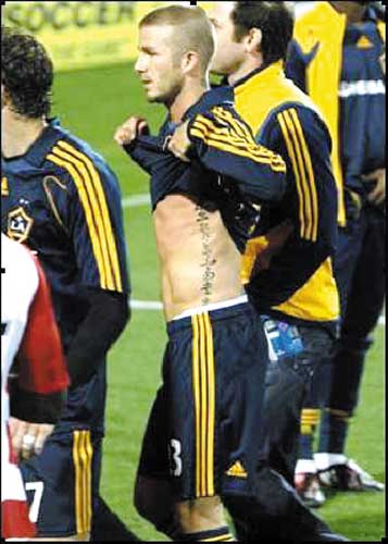 大衛(wèi)·貝克漢姆近日隨洛杉磯銀河到訪中國的上海和香港,而此行過后,小貝身上也留下了中國的印記,“萬人迷”身軀的文身增加了肋部的一行中國文字。