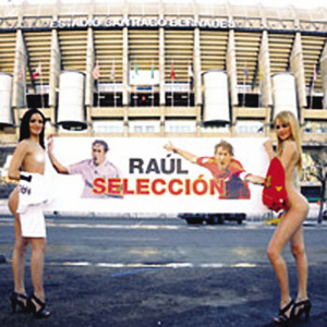兩個(gè)巴西美女比西班牙大多數(shù)的足球記者們更懂足球,她們談起皇馬的技戰(zhàn)術(shù)來(lái)頭頭是道。為了支持勞爾重返國(guó)家隊(duì),近日,她們?cè)诓{烏球場(chǎng)前做出大膽舉動(dòng),不惜為自己的偶像犧牲個(gè)人形象!皠跔栠@個(gè)賽季已經(jīng)打入了20個(gè)進(jìn)球,他是冠軍聯(lián)賽、西班牙國(guó)家隊(duì)和皇馬俱樂(lè)部的歷史最佳射手,同時(shí)又狀態(tài)正佳,如果博斯克不把勞爾重新招入國(guó)家隊(duì)的話,那我們實(shí)在無(wú)法理解。”