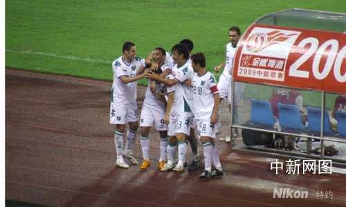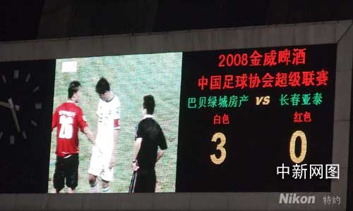 上半場(chǎng)第17分鐘,曹軒左路得球一腳直傳,閻嵩跟上將皮球傳中,中路的蔡楚川高高躍起,將球頂入長(zhǎng)春亞泰隊(duì)的大門,浙江綠城終于收獲首粒進(jìn)球。2分鐘后,長(zhǎng)春隊(duì)獲得一次反擊良機(jī),但達(dá)扎吉禁區(qū)內(nèi)得球后起腳射門,球被姜波撲出底線。